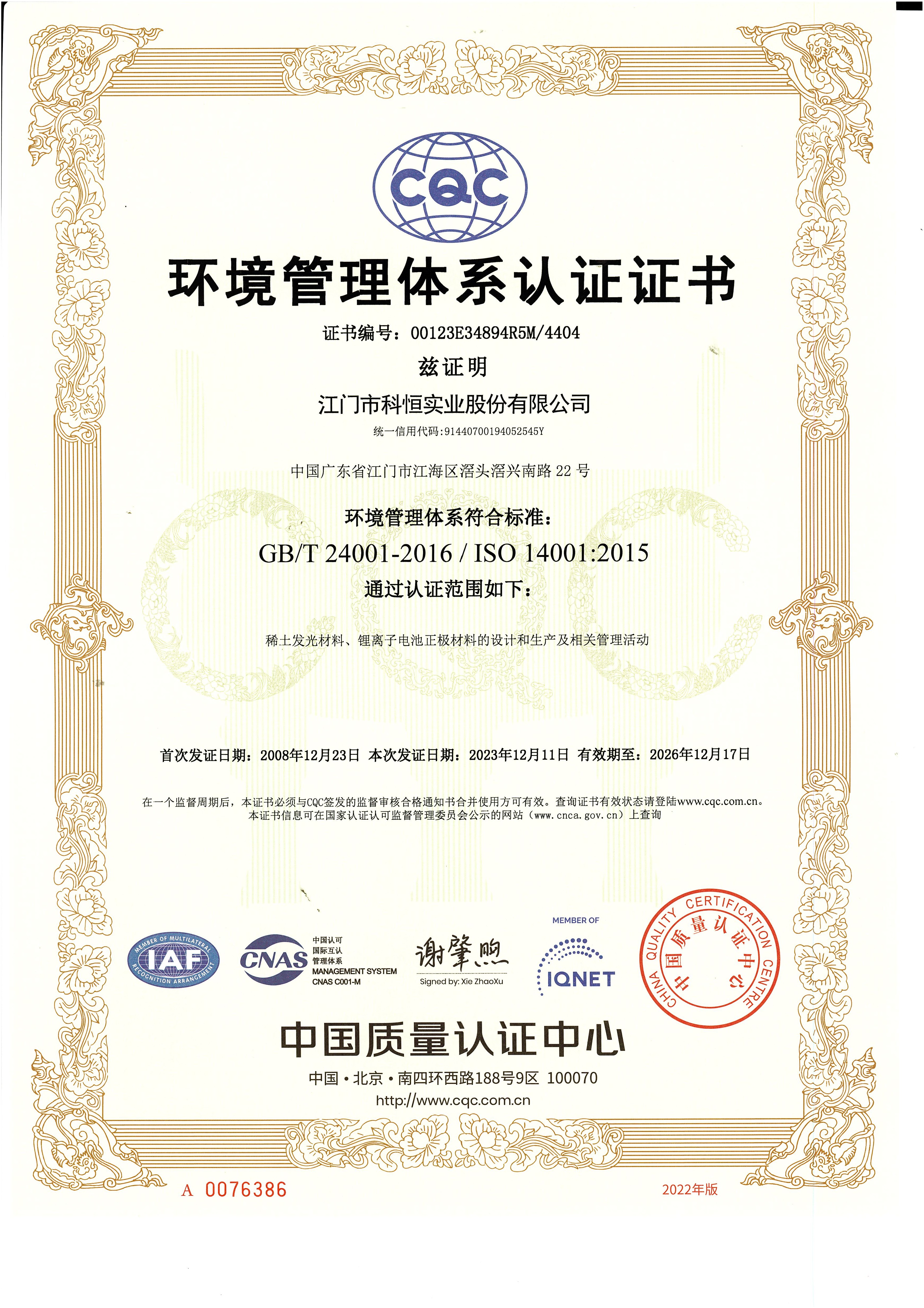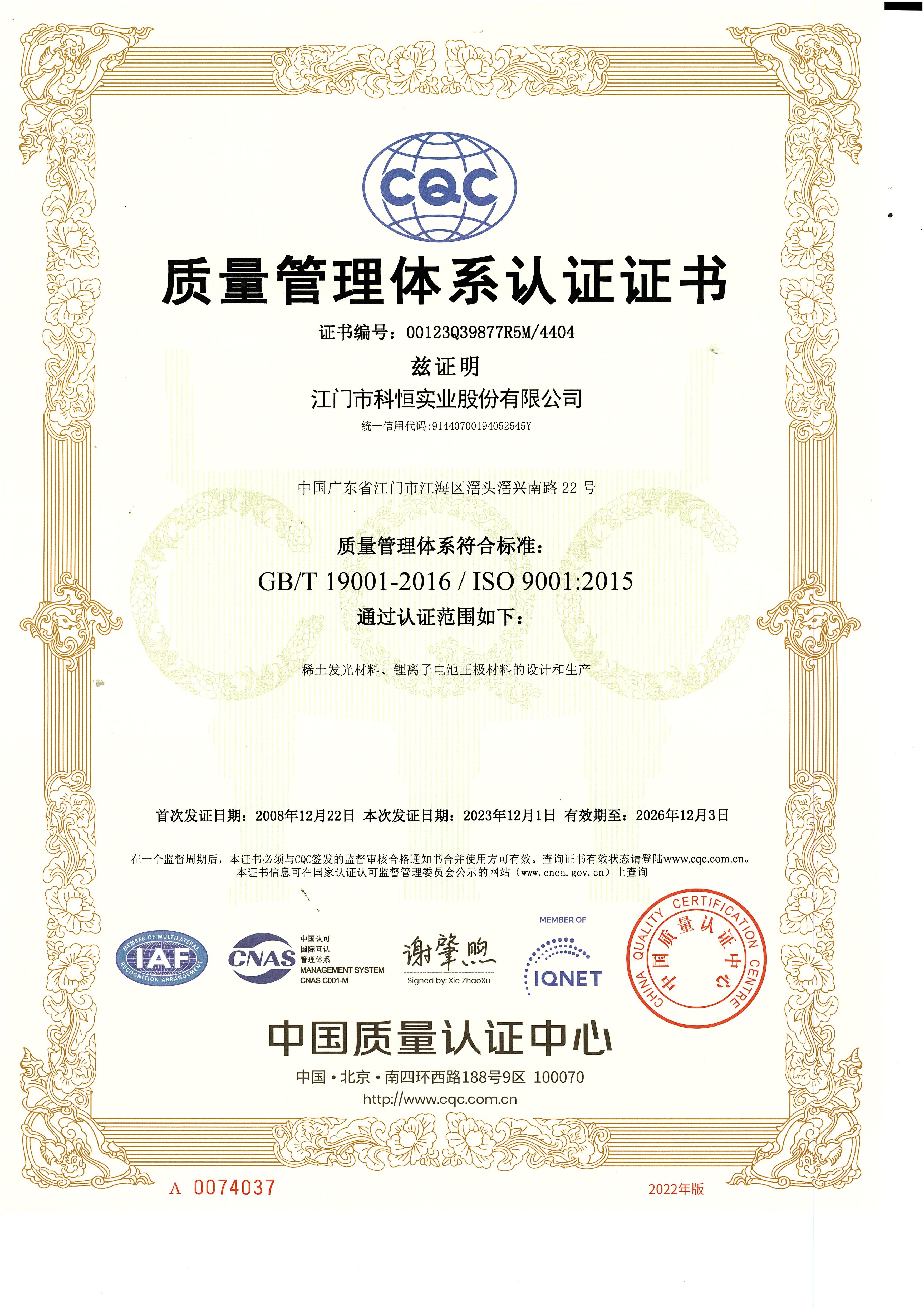 科恒堅持“科技卓越、永恒追求、質量第一、客戶至上”的質量方針,設立各級質量控制體系,保證產(chǎn)品質量。公司先后通過了ISO9001質量管理體系認證和ISO14001環(huán)境管理體系認證。公司以滿足客戶需求為宗旨,以卓越的科技成果、完善的制造過程,制造一流的產(chǎn)品、增值的服務、共享的價值,讓客戶滿意。